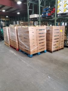 Food delievered to Community Action Partnership Food Bank. Lots of volunteers helped each week to unpack and repack food for distribution to other partners.