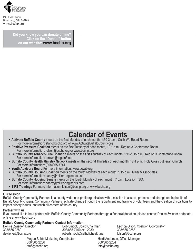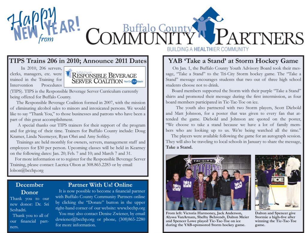 The January Newsletter for Buffalo County Community Partners is now available. To view the newsletter, click on an image below or download the pdf.