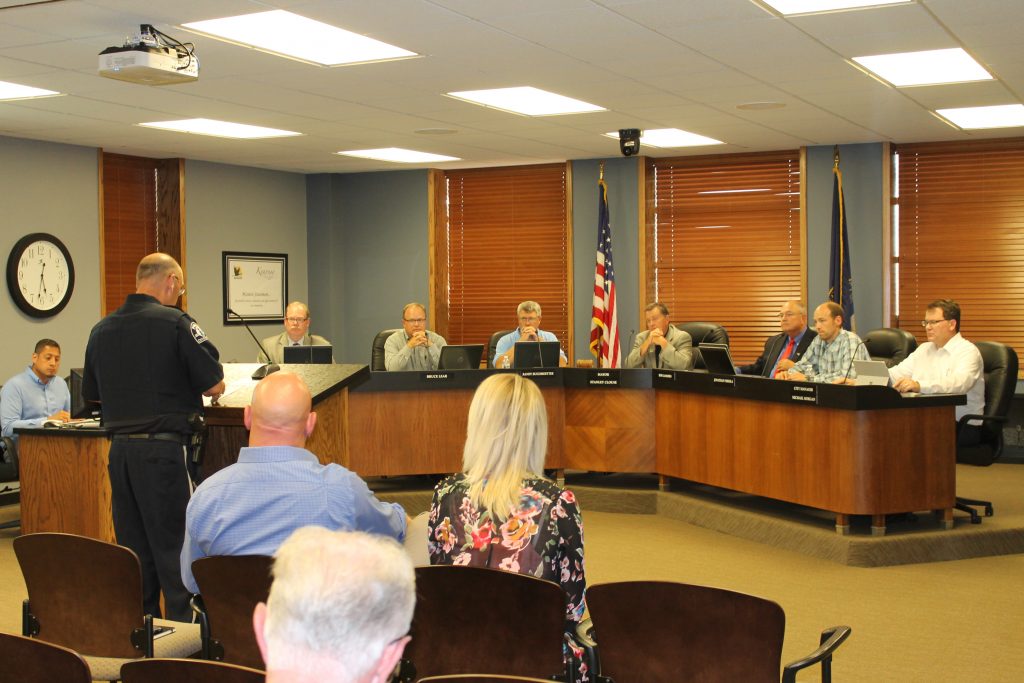 Chief of Police, Dan Lynch, speaks at the city council meeting. Lynch said the results of Cruise Nite are a direct result from community involvement.