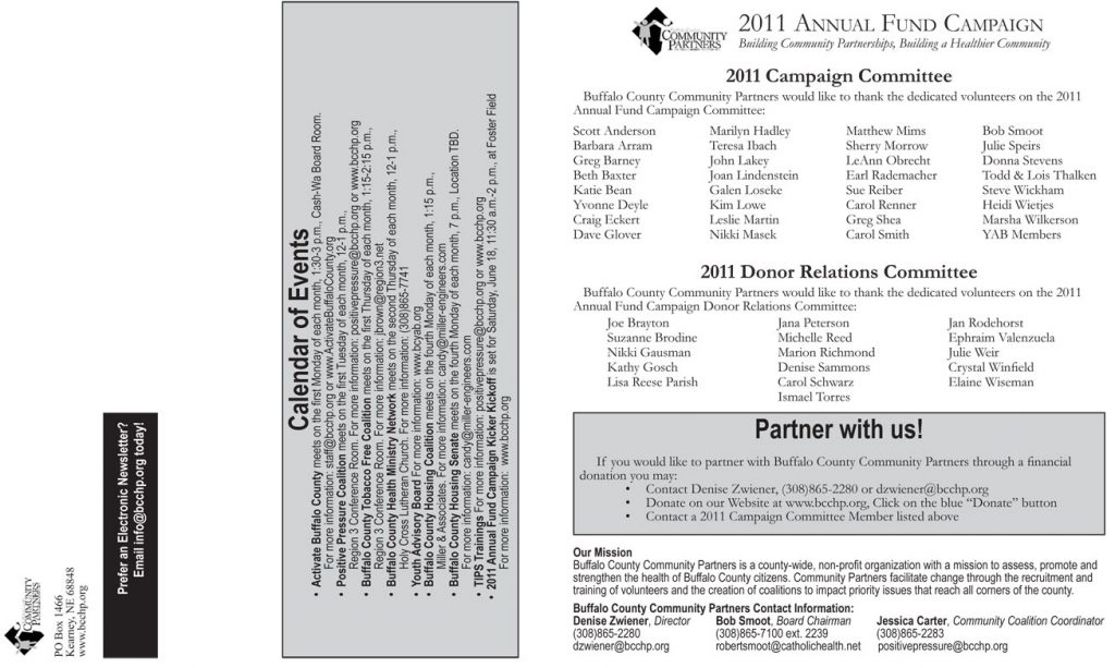 The May Newsletter for Buffalo County Community Partners is now available. To view the newsletter, click on an image below or May 2011 Newsletter.