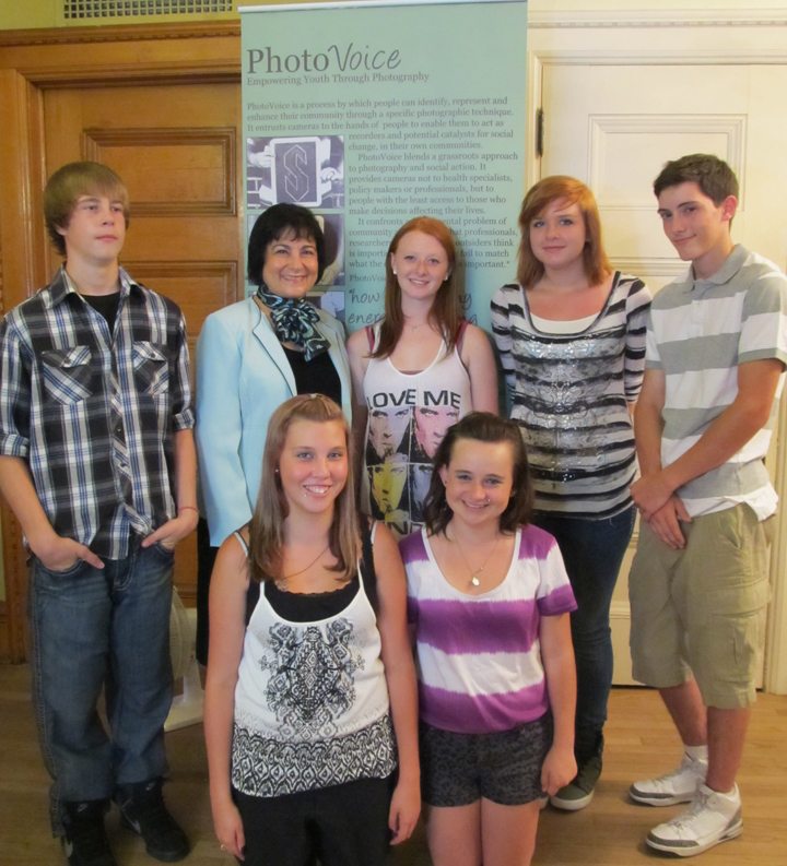 First Lady Sally Ganem joined the PhotoVoice participants at the Frank House for their reception on Monday, June 18h. From Left: Dakota, First Lady Sally Ganem, Abby, Kaileigh, Josh, Sadie and Shanee.
