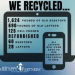 On September 8th,  the Community Response Taskforce/Buffalo County Community Partners hosted a Laptop Donation Day in partnership with Motherboard a recycled technology company out of Omaha. The event was able to gather 1,624 pounds of old desktops, 690 pounds of old laptops, 40 pounds of cell phones, and 1,288 pounds of other electronics such as monitors, keyboards, wires, etc.