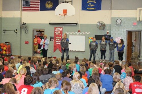 Emerson elementary students gather to hear from UNK athletes on why they choose to be drug free.